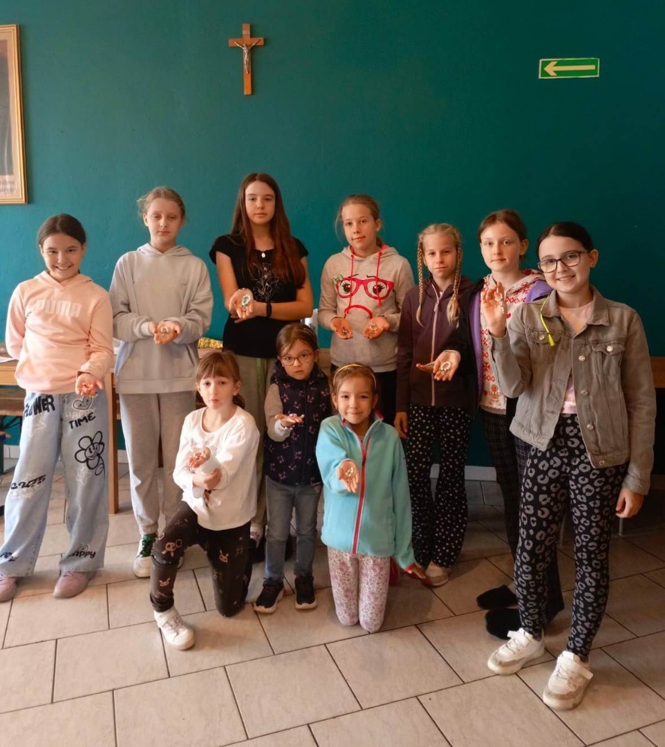 W związku z miesiącem październikiem, szczególnie poświęconym Matce Bożej, Dzieci Maryi zrobiły własnoręcznie różańce służące do modlitwy w czasie nabożeństw.